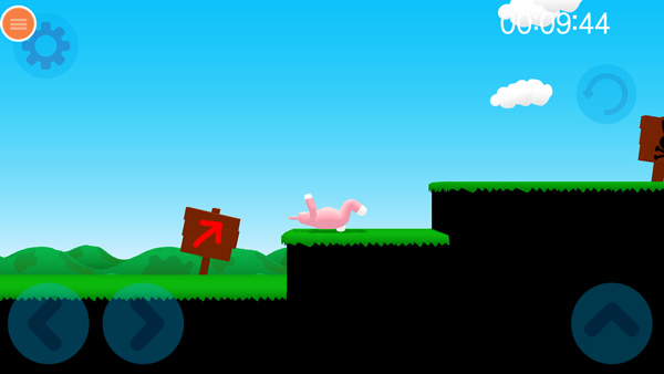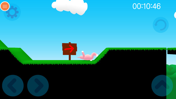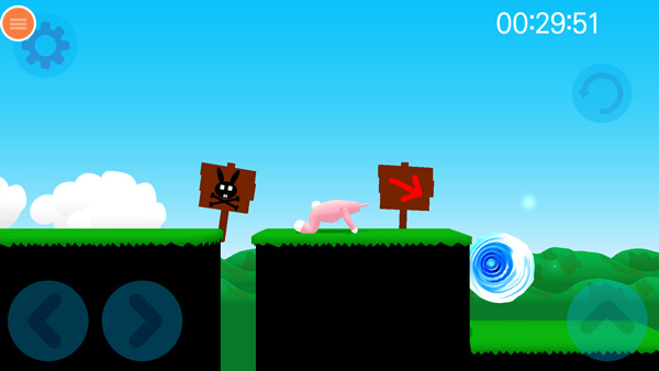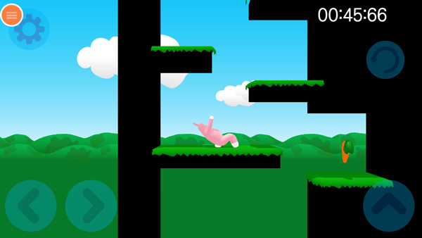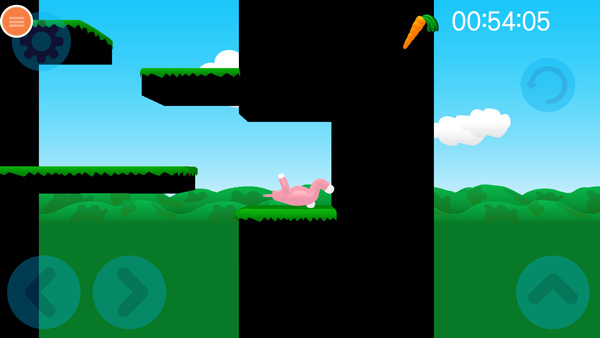 3、正式進入關卡挑戰(zhàn),先來熟悉一下操作流暢,左下方的左右按鈕可以控制兔子人移動,右側則是跳躍按鈕