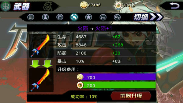 游戲中會(huì)有武器售賣,而在這里玩家將已有的武器進(jìn)行升級(jí),但越是高階的武器,升級(jí)鍛造的成功率也就越低。