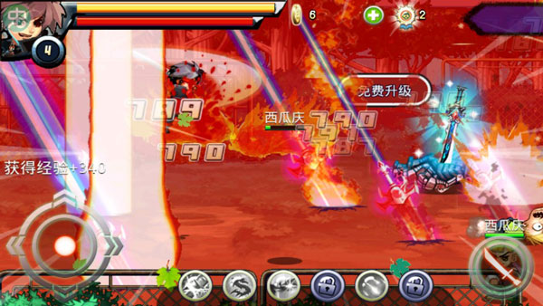 1、側(cè)邊滾動(dòng)操作,方便控制,讓玩家能快速上手體驗(yàn)。2、快速揮砍以通過敵人群,游戲情節(jié)活力十足。