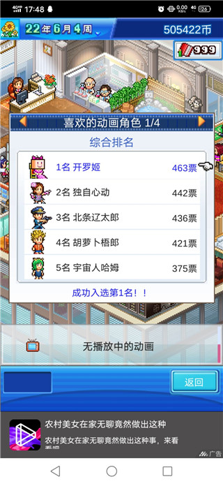 7、游戲的最初內(nèi)容有偵探,偶像,學(xué)生,冒險,發(fā)明,體育,釣魚,打籃球,幕府末期。新周目會繼承的內(nèi)容:游戲內(nèi)容的一部分等級,角色的配件,電視臺好感度職員水平、角色的數(shù)值、舞臺、報價會清零。這里大家要注意了哦。