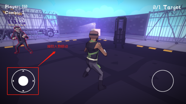 2、即可進(jìn)入格斗場場地,玩家可以通過操控左側(cè)按鈕控制人物移動(dòng)方向