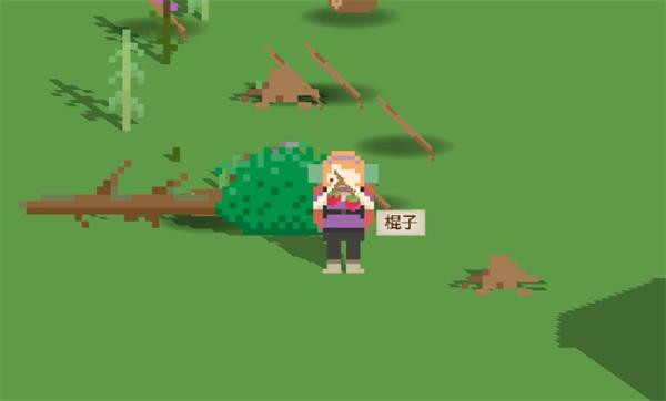 4、點(diǎn)擊樹木會自動砍樹,砍完后點(diǎn)擊掉落到地上的材料撿起。同理,點(diǎn)擊瓜果就可自動走過去采摘。