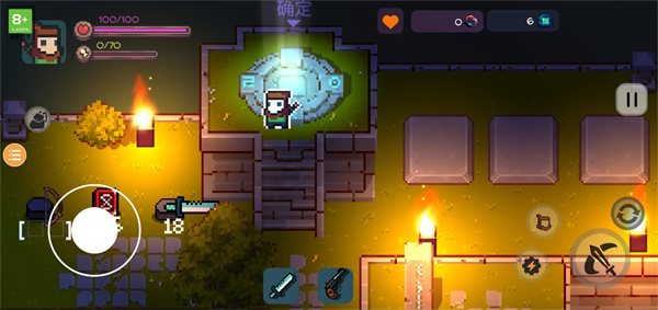 4、關(guān)卡中你通過左下角的搖桿進(jìn)行移動,通過右下角的按鈕來進(jìn)行攻擊;