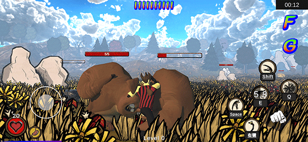 4、除了使用招式擊敗野豬外,玩家還可以使用槍械射擊,點擊右上角F按鍵切換為武器模式