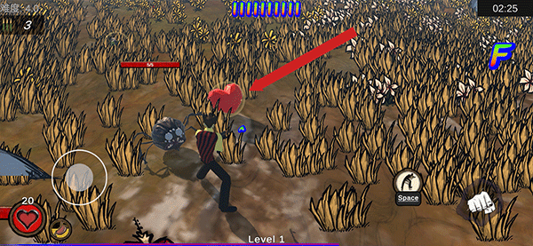 5、玩家在戰(zhàn)斗時也會被野豬傷害到,左下角愛心圖標為生命值,當生命值為0時挑戰(zhàn)就會失敗,但是玩家可以在地圖中拾取愛心來補給生命值