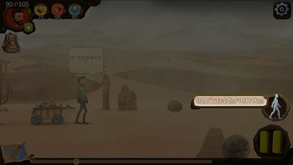 3、進(jìn)入游戲后下方可以切換行走或者跑步兩種狀態(tài);