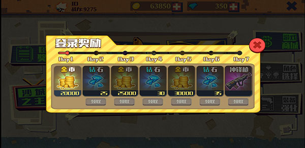 1、游戲中可以通過(guò)每日登錄獲得金幣,還有一些武器、角色;