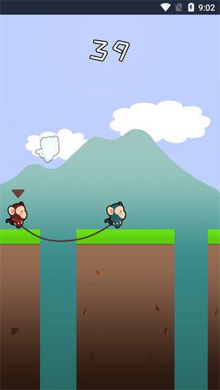 游戲其實就整體結構而言并不復雜,橫版闖關,Q版的畫面,玩法也非常“容易”。我們需要操作兩個被繩子捆在一起的角色,跳躍過懸崖,我們的目的只有一個,不要讓兩人同時掉落落差之下,不斷前進。操作上,我們只要長按屏幕就可以讓人物進行跳躍,根據(jù)持續(xù)按的時間會決定角色跳躍的距離。