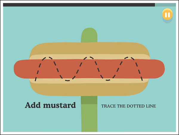6、玩法:玩家看見中間紅色的香腸上的虛線,玩家需要用沙拉把虛線遮住。