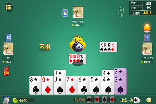 那么,為了有效的防止這種狀況的發(fā)生,我們在上貢的時候,就應該挑選自家有比較多相鄰同花的那一張最大牌作為上貢牌型交出。如果說玩家的手牌中沒有如此的牌型,那就將這個范圍再擴大一下。自家相鄰同花的多了,對手那邊自然也就少了,這樣上貢上去的牌型,回貢方形成同花的幾率就會降低很多,保證了己方的安全。