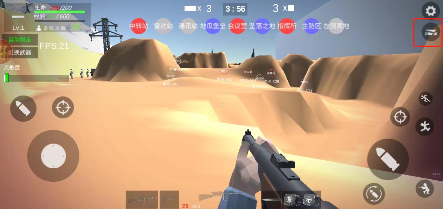 6、在游戲中,我們還可以打開地圖,就可以看見隊友的位置;還可以點擊左邊的自動射擊;
