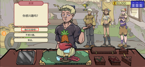 4、跳過(guò)之后,然后就是我們第一個(gè)賣(mài)家上門(mén)了,我們需要根據(jù)點(diǎn)擊讓我看看;