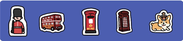 皇室衛(wèi)兵、紅色電車、紅色郵筒、紅色電話亭、英國皇室犬(威爾士柯基)