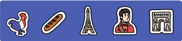 高盧雞、法棍、巴黎鐵塔、拿破侖(沒錯,這個溫和害羞的大男孩就是拿破侖!)、凱旋門