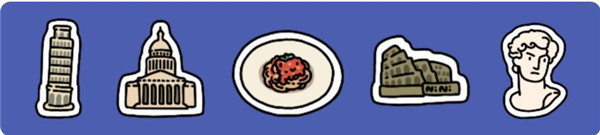 比薩斜塔、比薩大教堂、意面、古羅馬斗獸場、大衛(wèi)(米開朗基羅)