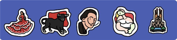 西班牙紅衣舞女、斗牛、達利(《記憶的永恒》)、《夢》(畢加索)、圣家族大教堂