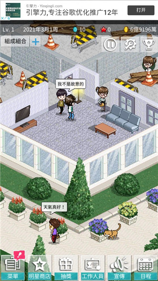 1、給自己的公司起名字,給自己的團體起名字,給自己的編入團練習(xí)生們起藝名,點擊紅色的任務(wù)按鈕,會招攬練習(xí)生,然后會有各個國家的練習(xí)生們被你招聘過來,這些練習(xí)生都有自己的出生日期,喜歡的東西,喜歡的運動,就很真實,它們就像真人一樣,你就是他們的經(jīng)紀(jì)人,他們就是你家藝人,點擊制作可以制作專輯,專輯風(fēng)格,專輯名字,專輯的服裝搭配,可繁可簡,自由度很大。