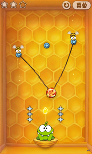 2、泡泡,糖果碰到泡泡的時候會上升,用手指點擊泡泡使其破掉,當然了,當糖果飄出屏幕或者掉落出邊界游戲就結(jié)束了。