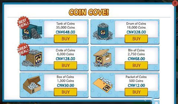 這一方法就是土豪通道啦,通過人民幣來獲得銀幣,但是此方法只適用于土豪哦,因?yàn)閮?nèi)購的數(shù)額是比較大的,就怕一般的屌絲級(jí)玩家沒有相應(yīng)的經(jīng)濟(jì)實(shí)力哦,所以小伙伴還是通過實(shí)際的勞動(dòng)獲得吧!
