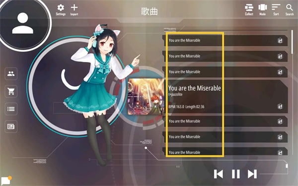 3、初次進(jìn)入游戲界面,右邊是歌曲列表
