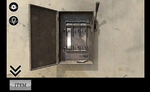 9、使用【鑰匙】打開電梯門旁邊的電箱。拿到【電池】