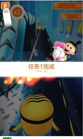 4、另外,在“小黃人賽跑”模式中,撞到障礙物也不會(huì) GAME OVER,但會(huì)大幅減速,讓你落后其他小黃人,千萬(wàn)要注意哦!只有奪得“小黃人賽跑”的終極寶座,才能成為史上最邪惡的壞蛋!你準(zhǔn)備好了嗎?