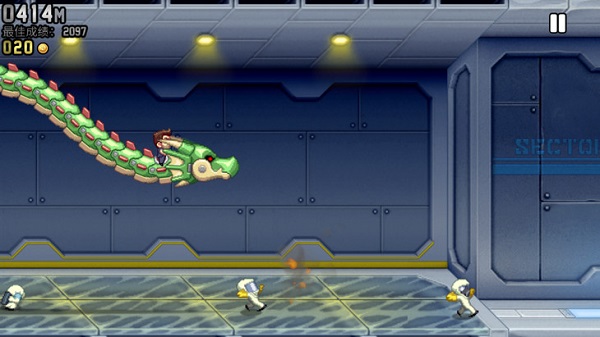 輕觸任何位置開始游戲,點(diǎn)擊屏幕人物就會(huì)往上飛,當(dāng)不點(diǎn)屏幕就會(huì)降下,依據(jù)金幣和道具的位置來進(jìn)行調(diào)節(jié),游戲而類似于像素鳥的玩法,但還加入了射擊功能。期間遇到有電流的障礙,需要躲避,不能出碰,不然游戲GG。