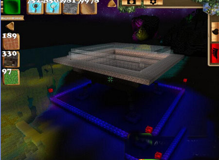 1、鋪上一塊場地作為飛碟降落臺,大小自己選擇,降落臺四周圍上水晶塊,四個點做上信號燈,在降落臺做上飛碟支柱。