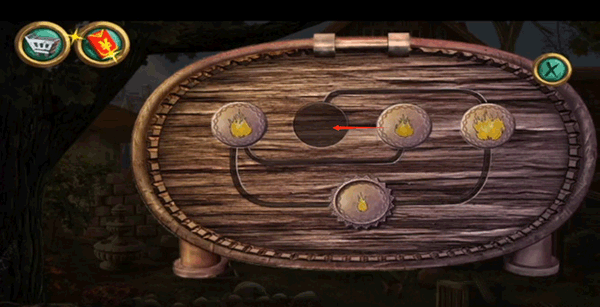3、向下看,小圓桌上就可以找到窗戶把手和提燈把手等,這里還有一個(gè)拼圖機(jī)關(guān),缺了蝸牛和鳥雕像。