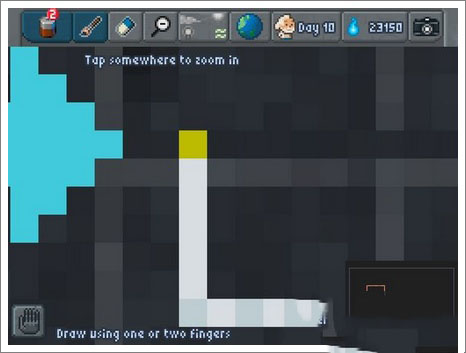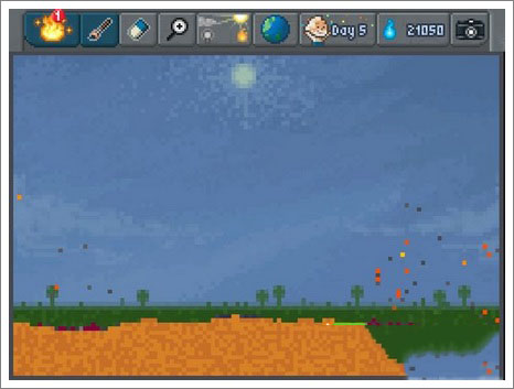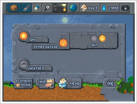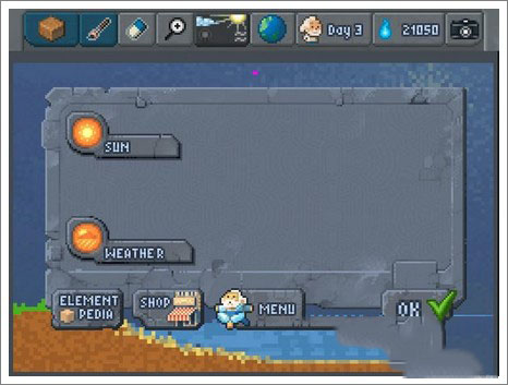 直接點(diǎn)擊五號(hào)鈕,打開天氣(weather)選項(xiàng),等水分蒸發(fā),一段時(shí)間后水蒸氣匯聚成云,掛在紫色的點(diǎn)上,雨持續(xù)落下,關(guān)卡完成。