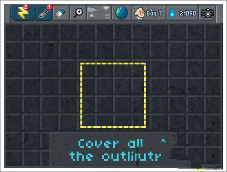 首先點(diǎn)擊二號(hào)按鈕,選擇右側(cè)的鎬,在山內(nèi)部挖一個(gè)洞,完成一號(hào)任務(wù)。