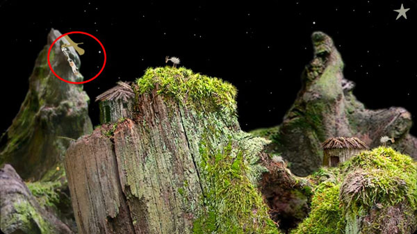 2、連接后,右邊山上長(zhǎng)花,點(diǎn)擊左上方山上的洞,蟲子飛去右邊山上。