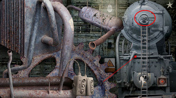 3、梯子會(huì)出來,爬上去轉(zhuǎn)動(dòng)開關(guān),改變行駛方向,搞定!