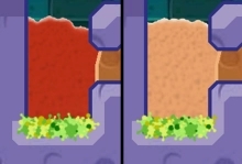 有新鮮度,新鮮的泥巴為深紅色,不新鮮的泥巴為肉色,最后會變成可以手動鑿開的土壤。保持新鮮的話,一是增加清水,二是讓蒸氣透過去,三是不讓它接觸石頭和土壤。遇到泥漿會同歸于盡。遇到毒水會變成泥巴,遇到熔巖無反應(yīng),能裝進氣球。另外,泥巴無視水藻,可以像氣球一樣在水藻上方。