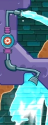 1、首先打開小鱷魚愛洗澡游戲,進入3-6截流關(guān)卡,按圖所示的一樣引出污水將左邊的炸彈引爆;