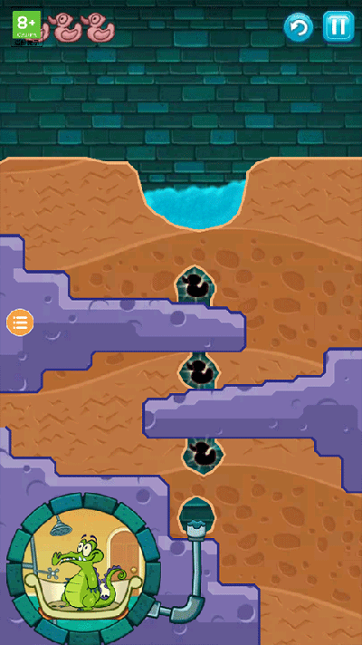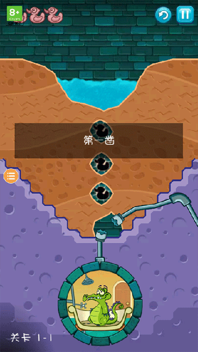 3、游戲的玩法非常簡單,玩家需要讓水留到小鱷魚所處的位置;