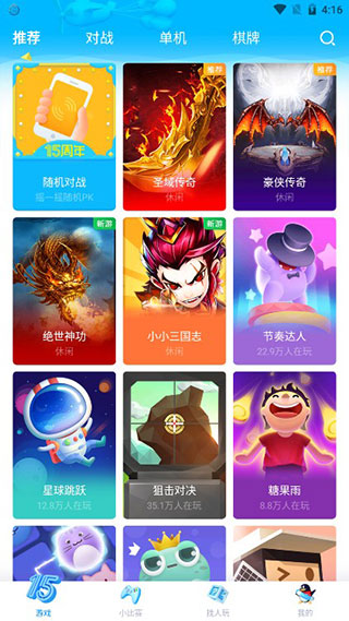 能夠和在線的QQ好友一起進入房間自動匹配休閑房間。