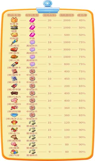 裝扮合成所需瑪瑙、游戲幣數(shù)量以及成功率將在每次限時(shí)活動(dòng)中進(jìn)行展示,敬請(qǐng)關(guān)注!