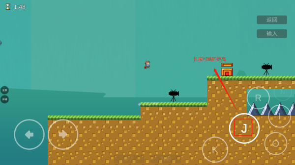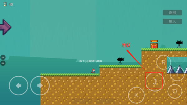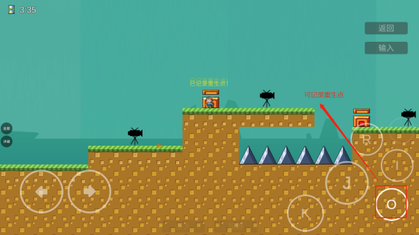4、點(diǎn)擊J可進(jìn)行跳躍,長(zhǎng)按可以跳的更高,點(diǎn)擊o可查看投影,也可以在“門”的位置點(diǎn)擊進(jìn)行記錄重生點(diǎn)