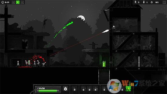 在地圖中下方獲得了一次注射的機會,后面也沒有太多需要注意的地方,看到有攻擊力的人類就選擇自爆基本都沒問題(僵尸的自爆對同類沒有傷害,只有擊飛效果),有些距離稍遠的槍手直接選擇注射病毒就OK了。