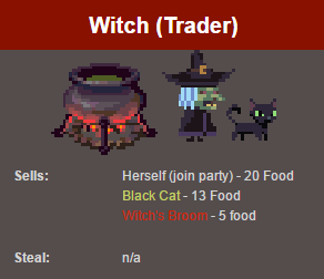 在交易者聚集地(Trading Camps)里的巫婆(Witch)用10個食物買。