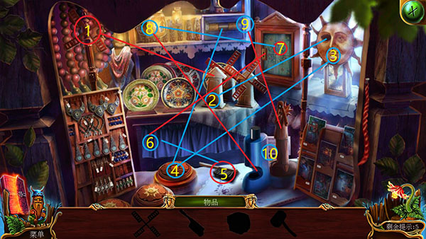 紅色為表面上直接能找到的,藍(lán)色表示隱藏的物品。最后得到鎬。