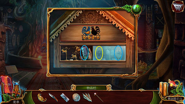 返回博物館大廳,點(diǎn)星1,放入公雞代幣,得到奇怪面具。