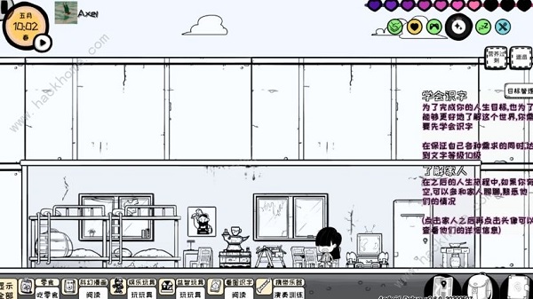左數(shù)第三個娛樂:很多事情都可以提高,但不知道是bug還是設(shè)定,玩玩具不能提高反而降低。另閱讀部分書籍時會出現(xiàn)先上升后下降。