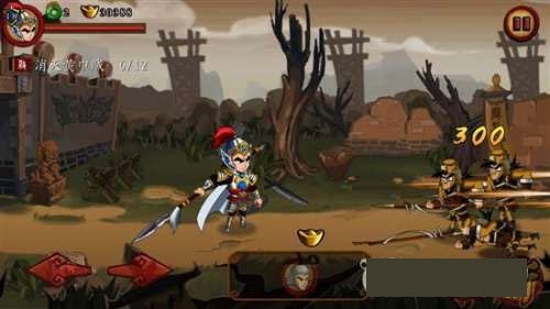 小兵出現(xiàn),這關(guān)前面小兵較少,過(guò)了幾波兵之后就會(huì)出現(xiàn)一大波的兵,這個(gè)時(shí)候我們就要注意了,不要看到地上有元寶或者雞腿丟不顧危險(xiǎn)去撿,這樣會(huì)因小失大,等兵殺的差不多了再去撿,這一關(guān)系統(tǒng)也會(huì)出一個(gè)小隊(duì)的槍兵,我們這個(gè)時(shí)候就可以躲在槍兵后面打了(在這我跟大家說(shuō)個(gè)小技巧,攻擊的時(shí)候可以攻擊三下然后退兩步再繼續(xù)攻擊,這樣的話可以躲開小兵的攻擊)