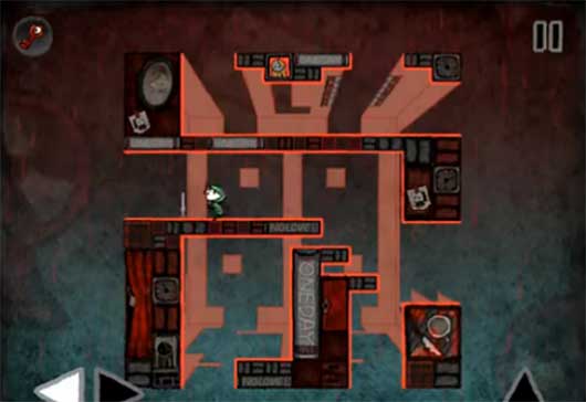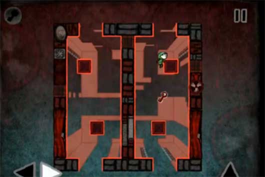 6.第三個場景踩下按鈕以后從左邊跳下來,落到左上的平臺上,然后沿路前進進入門內(nèi)解開順利過關。