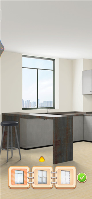 1、游戲開(kāi)始,當(dāng)選擇一處地方需要裝修時(shí),使用一定的金錢(qián)后會(huì)出現(xiàn)三個(gè)不同風(fēng)格的家居,根據(jù)自己的喜好來(lái)進(jìn)行搭配。