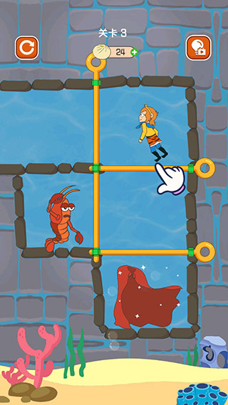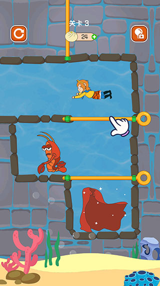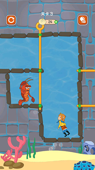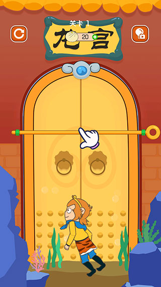 5、第三關(guān)拉開(kāi)豎向的拉桿后,龍蝦和孫悟空都會(huì)開(kāi)始移動(dòng)。