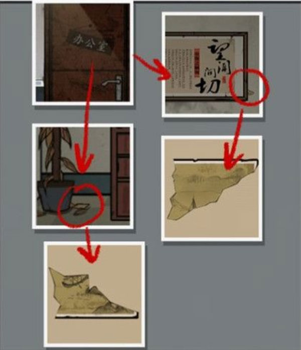 1、進(jìn)入辦公室后,在望聞問切牌后拾取明信片碎片4,植物處獲得明信片2。