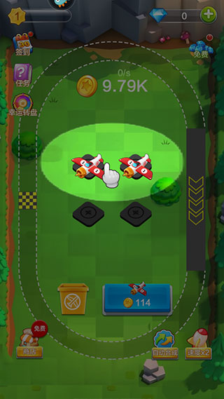 1、開局呢,我們先購(gòu)買飛機(jī),只有飛機(jī)買的多了,我們才能有幾率獲得彩色飛機(jī)。